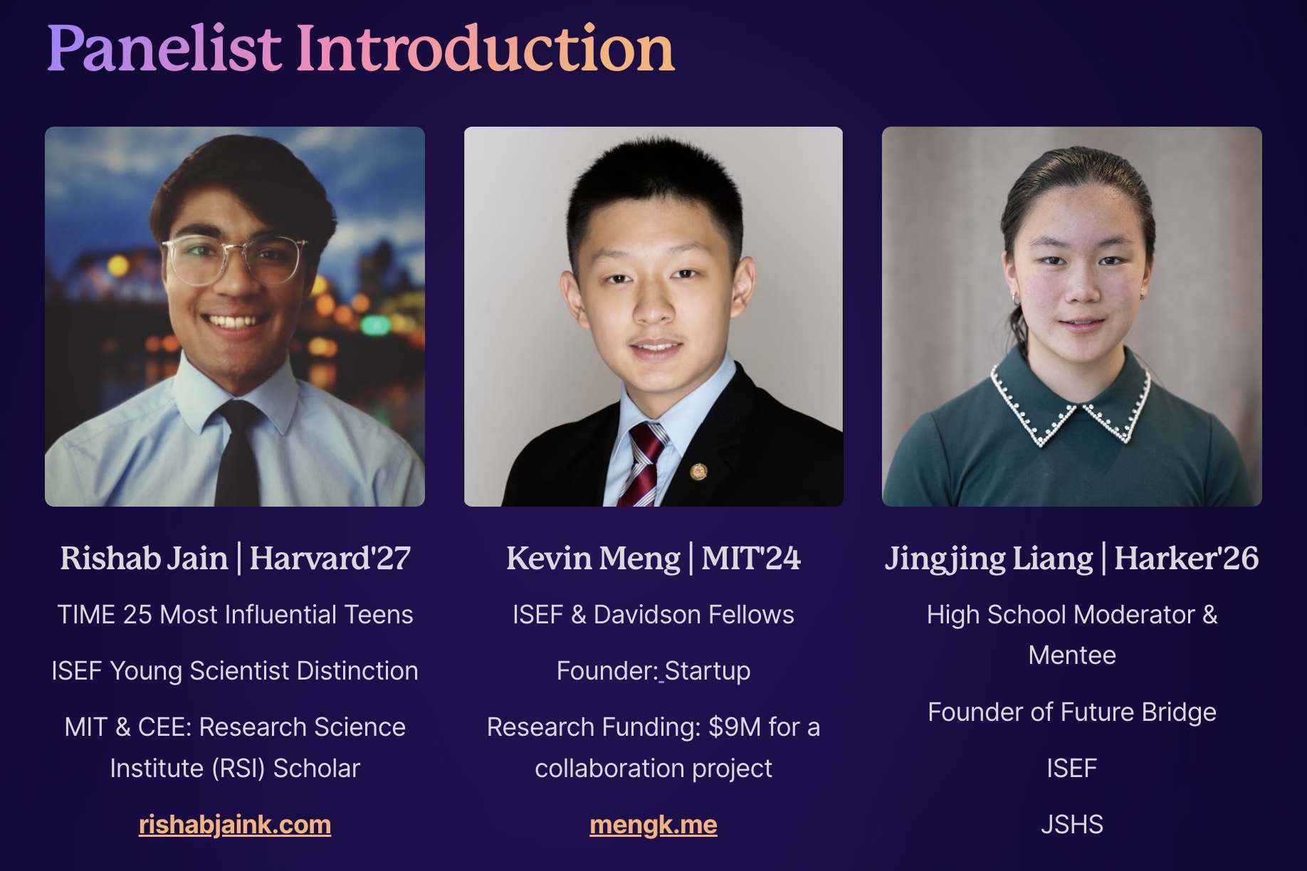 6/8/2024 - Today, I moderated a panel discussion with Rishab and Kevin, two important mentors along my high-school journey.